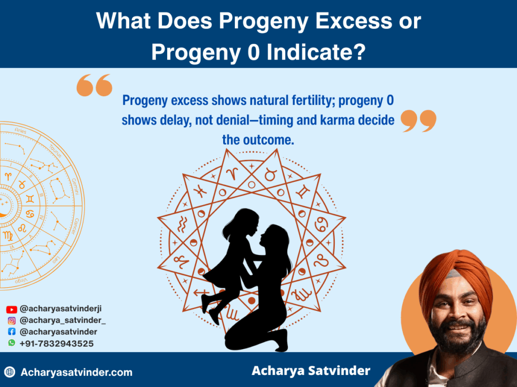 Progeny 0 in kundli doesn’t mean absolute denial of children. It often indicates delay, karmic learning, or medical challenges. A deeper chart reading and dasha analysis is needed to understand the full picture.